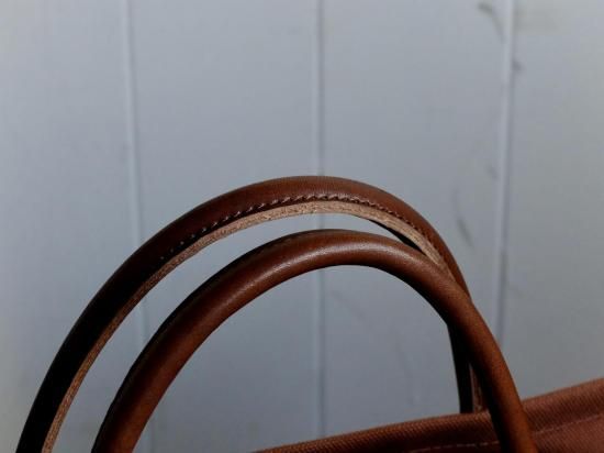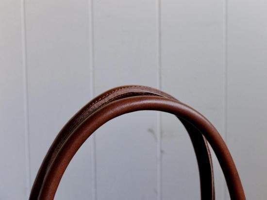 持ち手は国産サドルレザー、ステッチ+リベット止め。